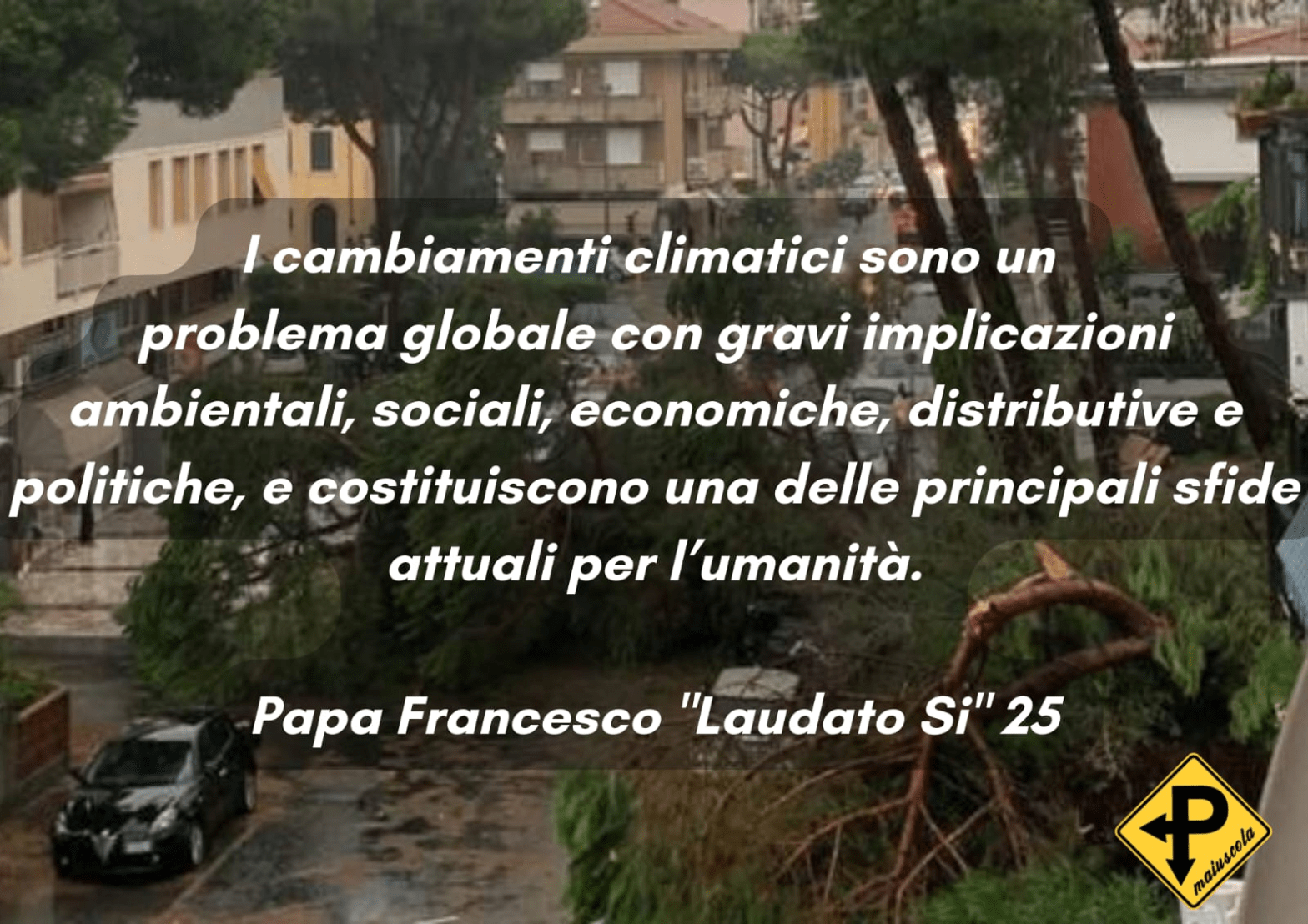 Il Santo Padre in ogni modo, negli ultimi anni, ci ha invitato a riflettere sui cambiamenti climatici e sulle loro conseguenze globali… martedì sera, Carlotta Palagi, referente per il Fridays For Future, sottolineava, con passione, la necessità di prendere “ora” in mano il futuro per non andare incontro a catastrofi peggiori. Nelle scorse settimane, con un gruppetto di giovani, stavamo riflettendo sull’impegno Politico (quello con la Pmaiuscola) e, il tema dell’ambiente, è stato il primo messo nell’elenco dei temi importanti sui quali ragionare.