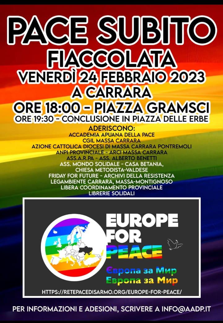 A Carrara, con la fiaccolata per la PACE partenza da piazza Gramsci alle ore 18:00 e conclusione in piazza delle erbe alle ore 19:30