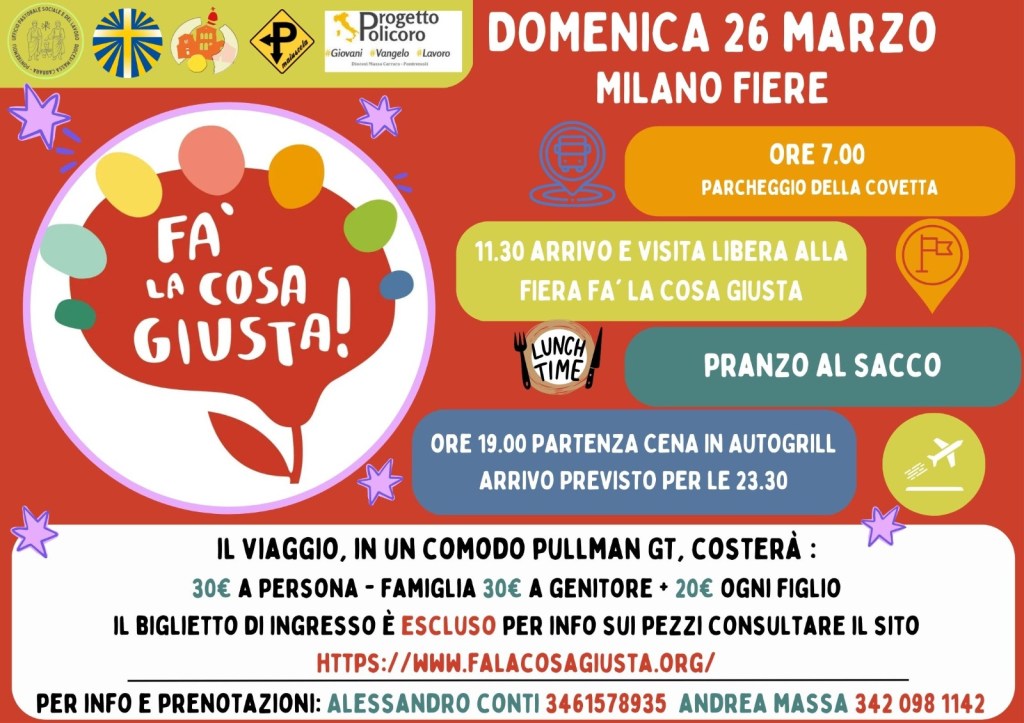 Per vivere l’esperienza in modo associativo e di comunità abbiamo organizzato il viaggio in pullman tutte le info nella locandina.