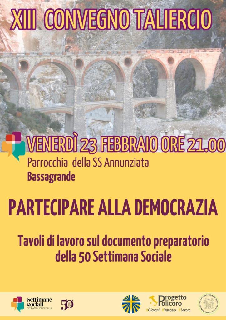 L’ AC in collaborazione con l’ufficio per la Pastorale Sociale e del Lavoro offre prima di tutto a sé stessa e poi alla Chiesa diocesana l’ occasione di iniziare un percorso di avvicinamento alla Settimana Sociale dei Cattolici in Italia che si svolgerà a Luglio 2024.
