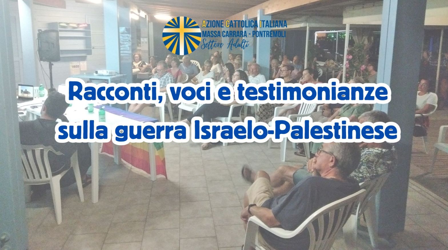Non è semplice parlare di guerra e soprattutto di pace facendo riferimento alla Palestina e a Israele, così come non è facile raccontare di speranza da una terra travagliata come appunto la Terra Santa. Ma è quanto ha provato a fare il Settore Adulti dell’Azione Cattolica Diocesana nella serata di Venerdì 26 luglio alla colonia diocesana Il Fortino, a Marina di Massa – Ronchi, nell’ambito delle serata culturali e ricreative estive organizzate per continuare a promuovere il Bene Comune anche in un tempo di riposo e di leggerezza come quello estivo.