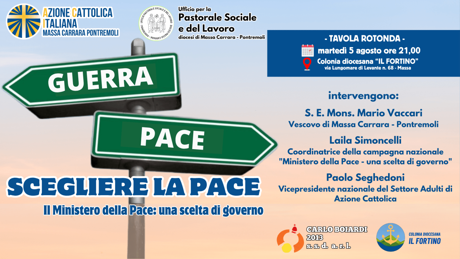 Il 5 Agosto come Azione Cattolica Diocesana, in collaborazione con l’ufficio per la Pastorale Sociale del Lavoro, abbiamo organizzato un primo incontro sulla proposta di istituire di un apposito Ministero della PACE sulla spinta di una campagna di sensibilizzazione che ha visto coinvolte molteplici realtà associative, ecclesiali e non.