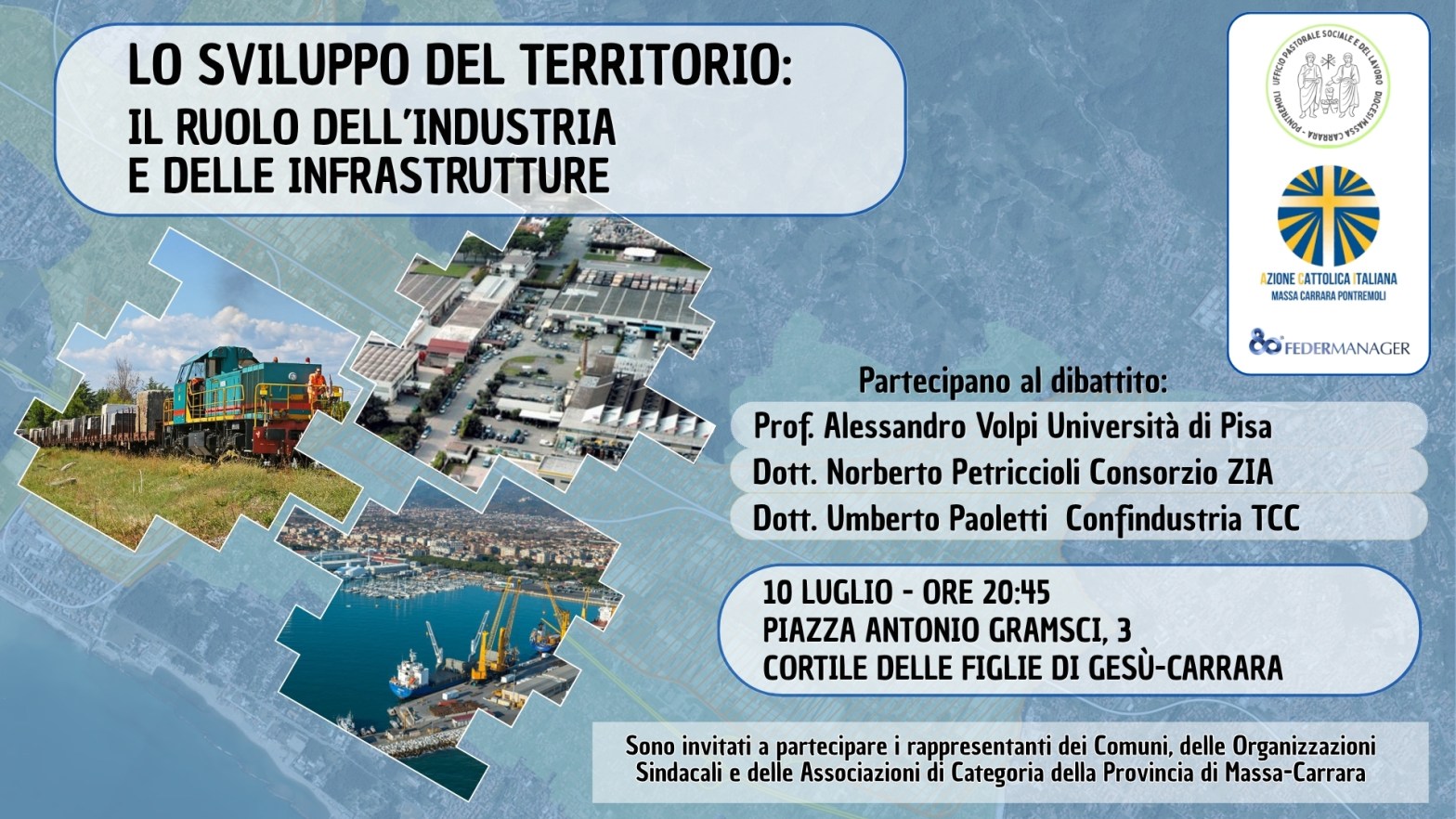 L’Azione Cattolica e l’Ufficio diocesano di Pastorale Sociale e del Lavoro, in collaborazione con Federmanager, hanno organizzato l’incontro pubblico dal titolo “Lo sviluppo del territorio: il ruolo dell’industria e delle infrastrutture”, in programma giovedì 10 luglio alle ore 20.45 a Carrara, presso il cortile delle Figlie di Gesù (Piazza Gramsci). L’iniziativa si inserisce nel percorso di riflessioni iniziato nelContinua a leggere ““Lo sviluppo del territorio: il ruolo dell’industria e delle infrastrutture””